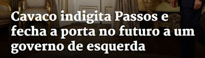 Embora não o tenha dito explicitamente, disse com clareza suficiente que não dará posse a um governo PS-BE-PCP, com maioria parlamentar, que ele entende ser maldito, sugerindo que, mesmo que o Governo PSD-CDS não passe na Assembleia, poderá deixá-lo em gestão até que haja condições para haver novas eleições. O facto de apenas o ter subentendido pode indicar que possa recuar, mas o tom agressivo das suas considerações faz com que, se o fizer, isso equivalha a uma gigantesca manifestação de incoerência e impotência, em si mesma um factor de instabilidade. [...]