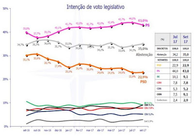 Sondagem Aximage para o Correio da Manhã e o Negócios. Maioria de Esquerda = 59,9%. A diferença entre o PS e o PSD é superior a vinte pontos (20,1%). Sozinho, o PS ultrapassa a PAF, que continua a descer e soma agora 28,1%. Clique na imagem para ler melhor.